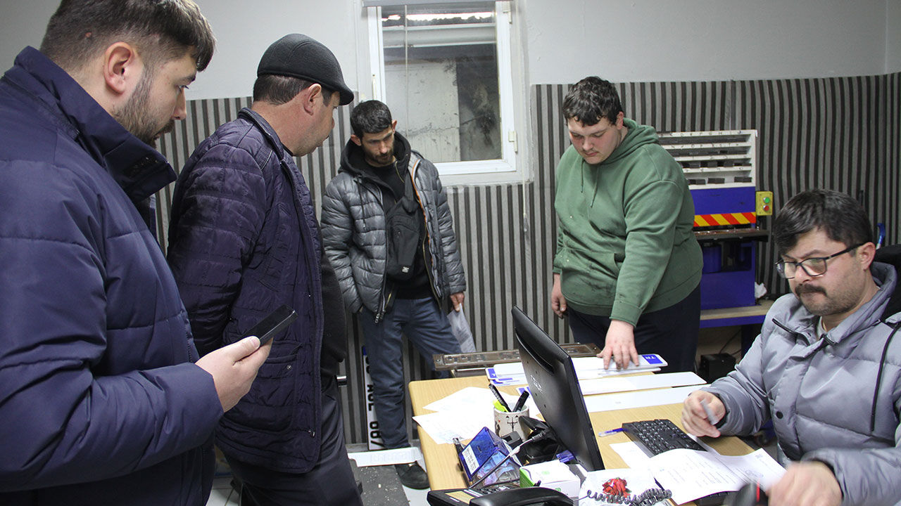 ‘App plaka’ kullananlara ağır yaptırımlar gelmesi üzerine, Samsun’un Çarşamba ilçesinde plakalarını değiştirmek isteyen sürücüler, şoförler odası önünde kuyruğa girdi.