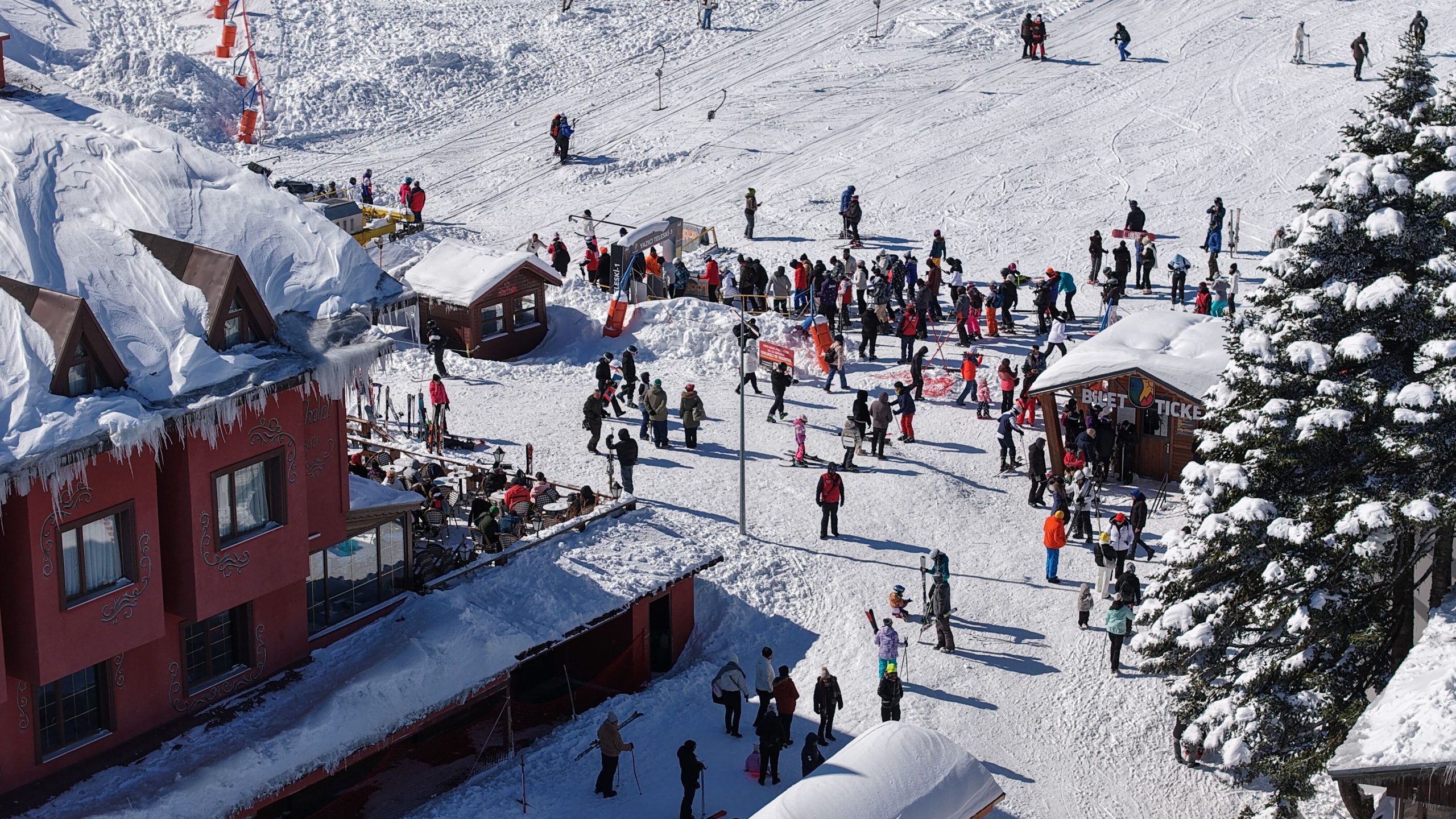 Kayakseverlerin ‘beyaz cennet’ olarak tanımladığı Türkiye’nin ilk kayak merkezi Uludağ’da, hafta sonu nedeniyle yoğunluk yaşanıyor. Otellerdeki doluluk oranının yüzde 80 olduğu Uludağ’da kar kalınlığı 170 santimetre olarak ölçülürken, hava sıcaklığı en düşük sıfırın altında 3, en yüksek 2 derece olarak kaydedildi. Güneşli havayı fırsat bilen tatilciler oteller bölgesine akın edince, kayak pistlerinde adım atacak yer kalmadı. Hem otellerde konaklayanlar hem de günübirlik olarak gelen kayakseverler, güneşli havada kayak yapmanın keyfini çıkardı.